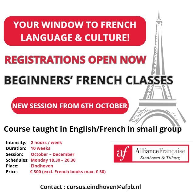 Informations et inscriptions : : Sophie Hery – cursus.eindhoven@afpb.nl – 06 83 21 47 77