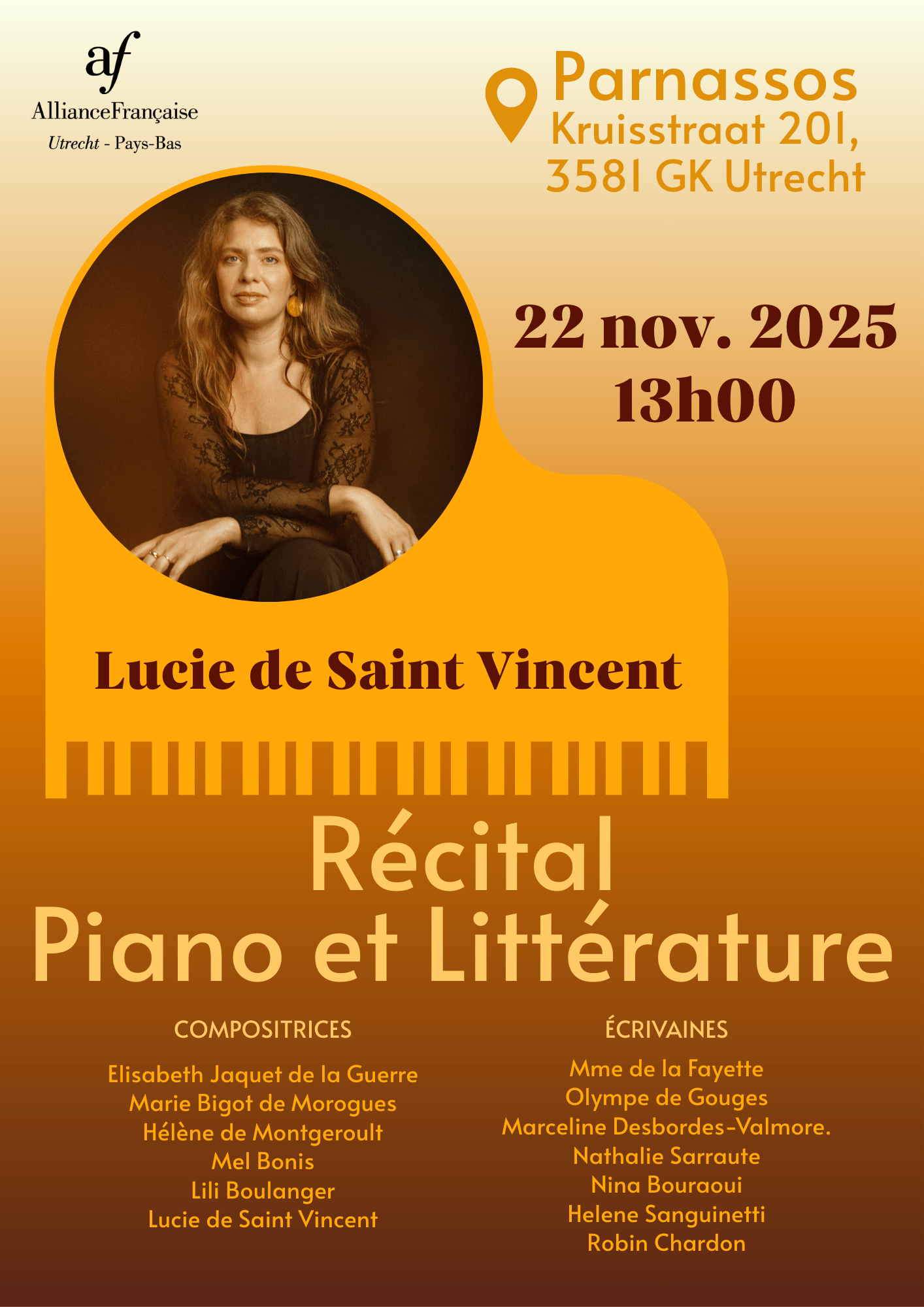 Lucie de Saint Vincent, pianiste, brengt ons een programma van vrouwen componistes door de eeuwen heen.