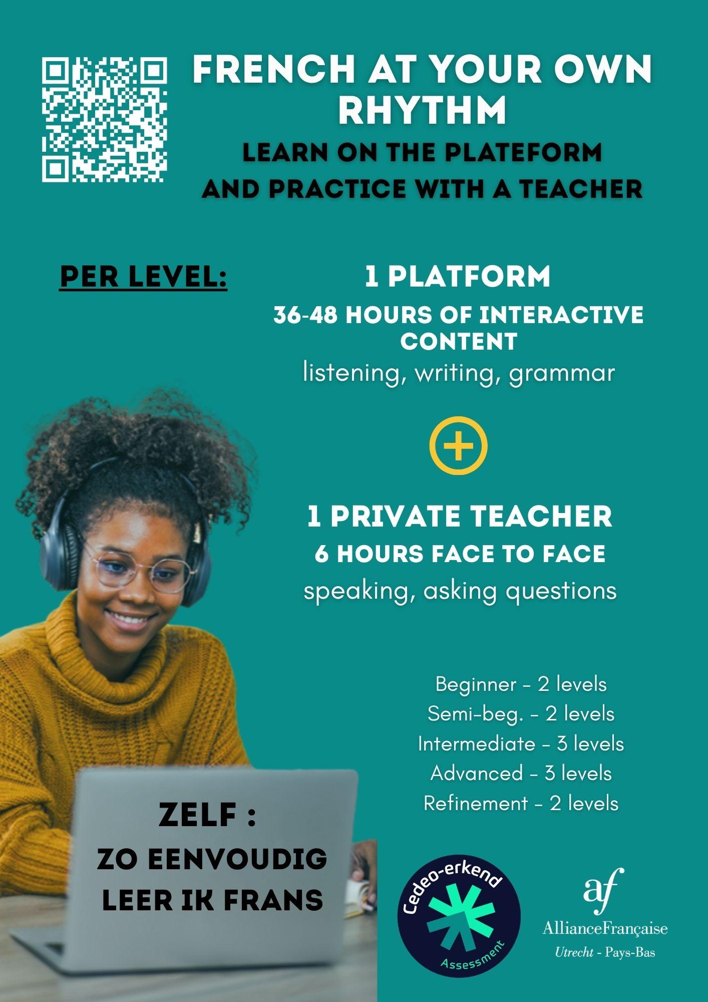 Met het onderwijsaanbod ZELF kunt u op afstand en in uw eigen tempo Frans leren.
