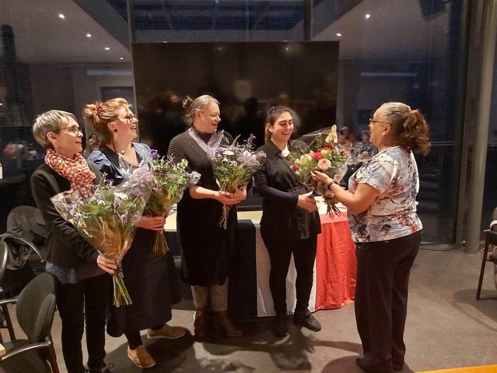 Na de bekendmaking van de winnaars en het uitreiken van de prijzen werden ook de docenten bedankt voor hun inzet het afgelopen cursusjaar. Als afsluiting werd er nog lang nagepraat onder het genot van een hapje en een drankje.